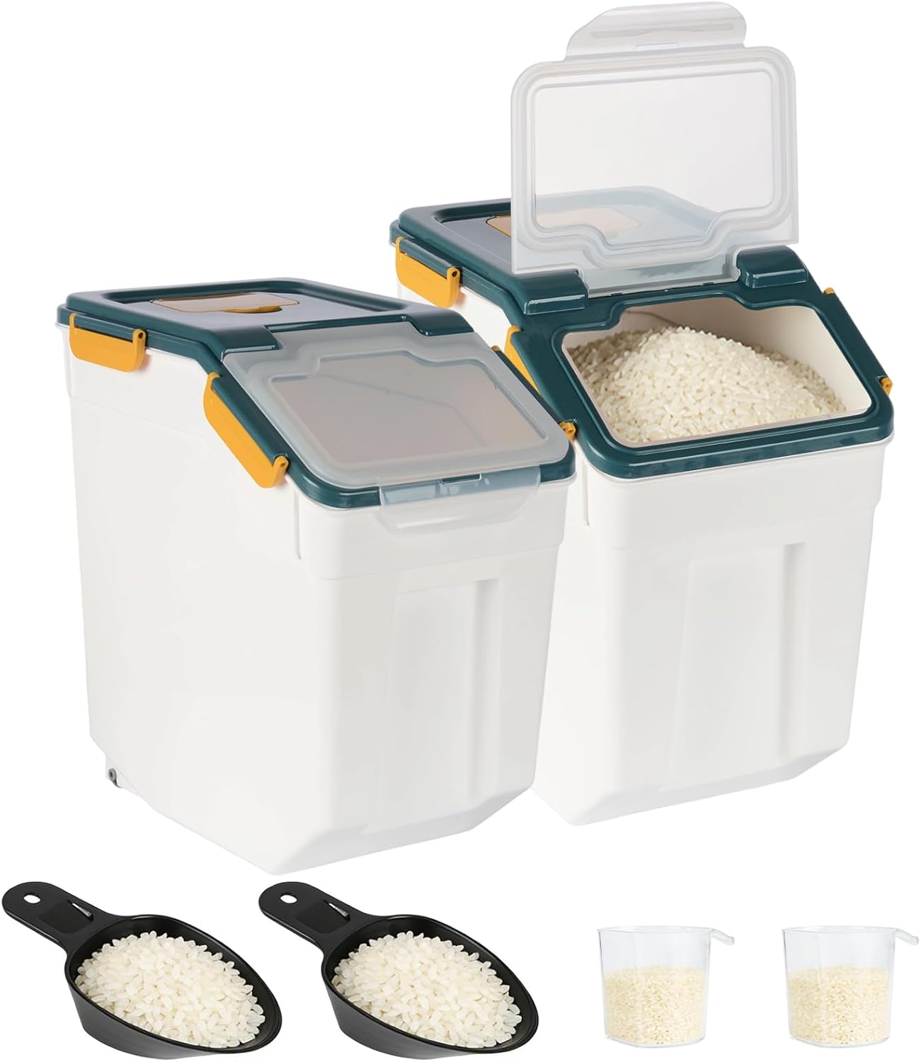 | Included Components | 2 x 25lbsrice storage container, 2 x Measuring Cup, 2 x Plastic Food Scoop |