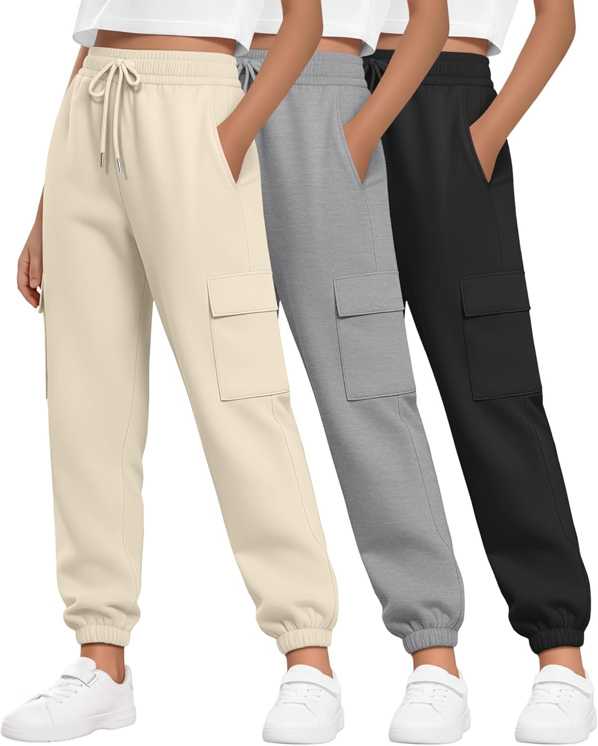 3 Pack Girl's Cargo Sweatpants Joggers Pants Causal Gym Athletic Workout High Waist Fall Outfits with Pocket