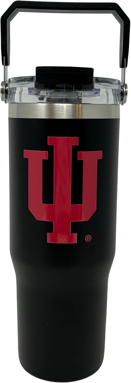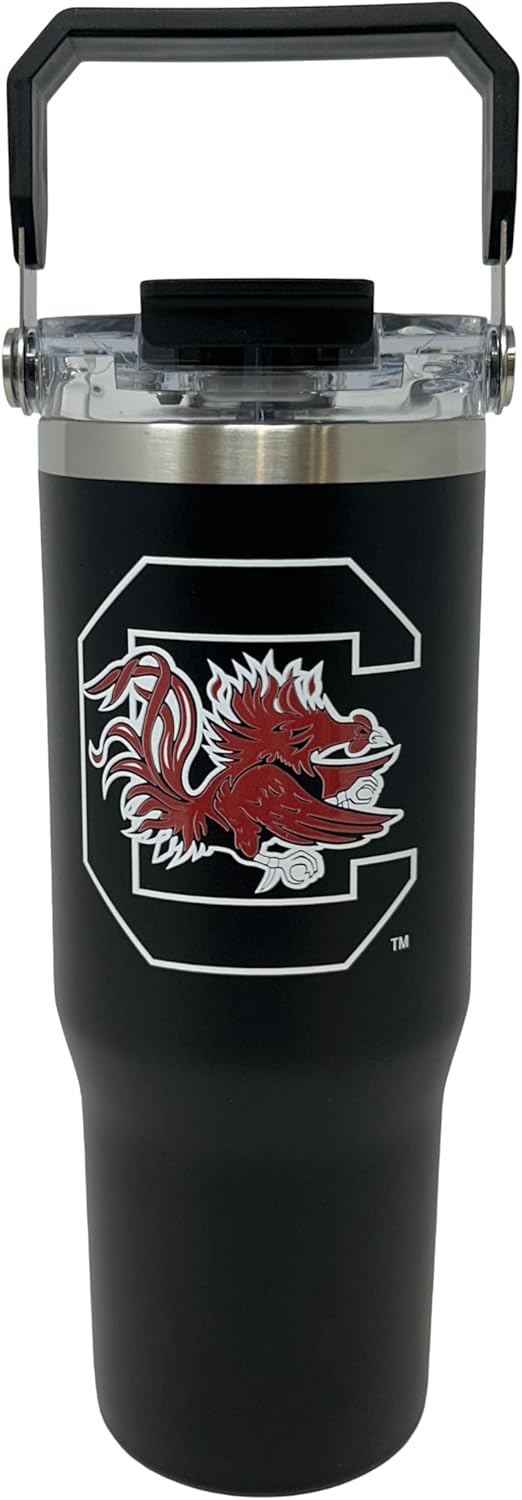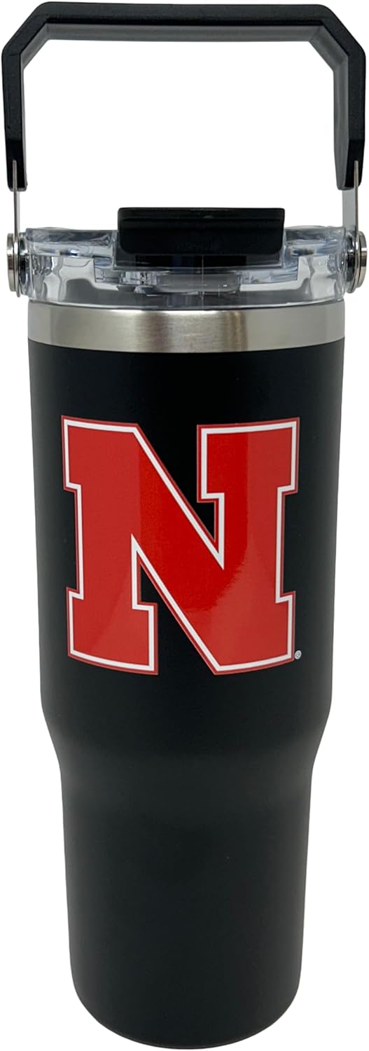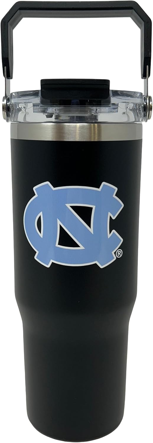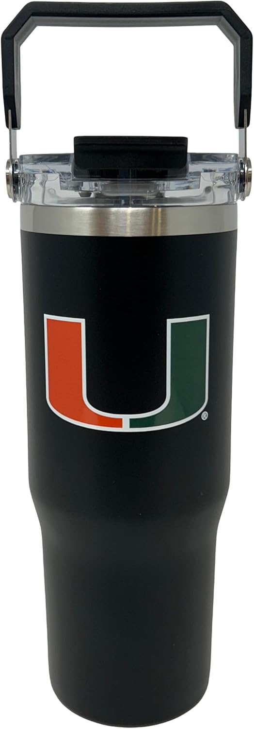 Decorvo officially licensed collegiate stainless steel 32 oz tumbler, double walled insulated travel with top handle, dual purpose serving as a coffee mug for your hot java or a water bottle for your cold drinks.