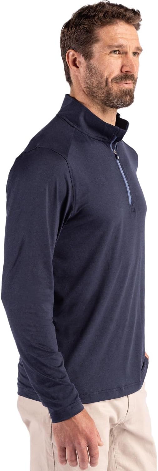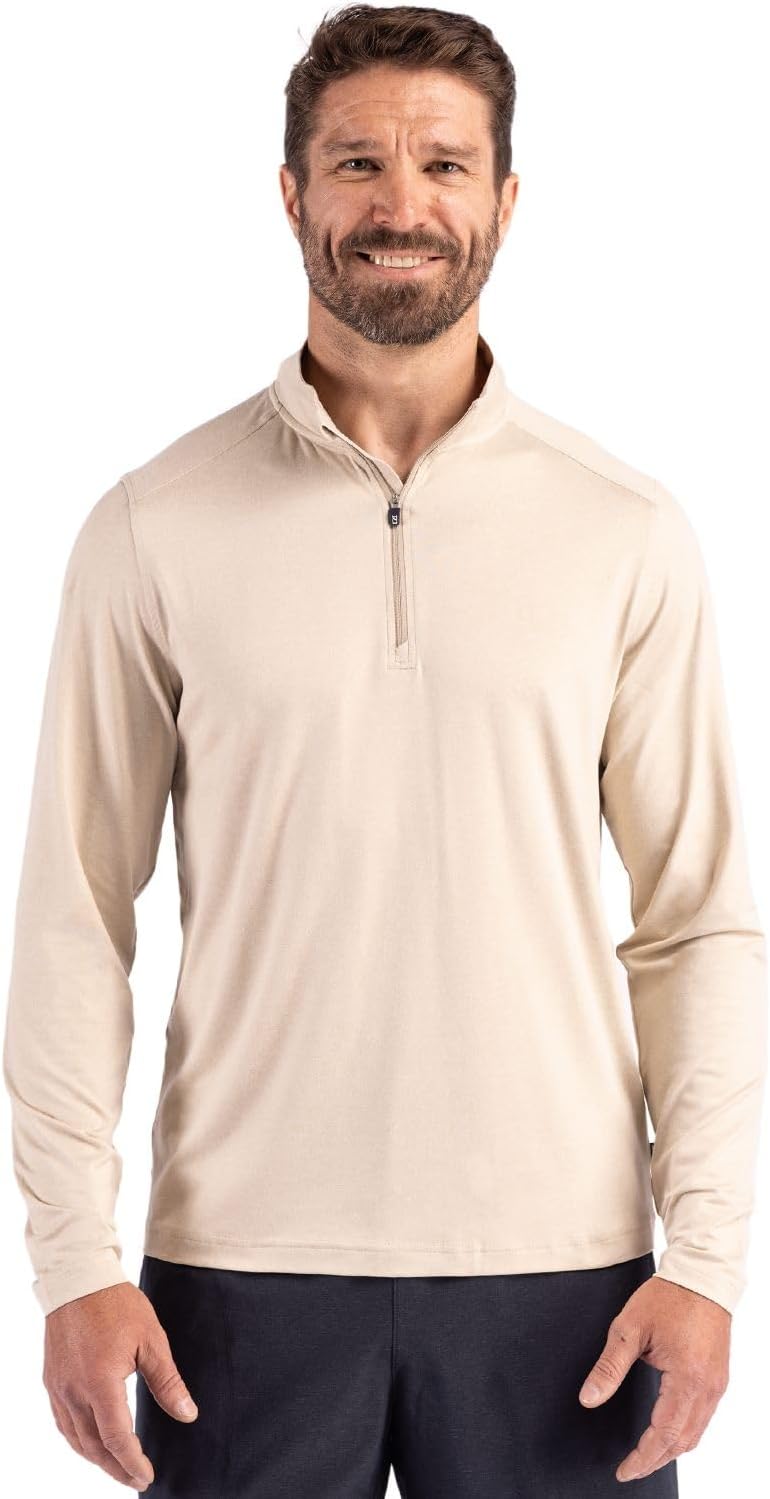 Where performance meets presence. Crafted for the man who moves with intension—from early morning commutes to weekend adventures and everything in between—Coastline Epic Comfort Quarter Zip with its lightweight, soft double peached fabric, is your go-to layer for every chapter of the day. Designed in the spirit of the Pacific Northwest, it blends effortless sophistication with comfortable versatility, transitioning seamlessly from trail to town, work to weekend, with thoughtful tailoring and breathable performance. Made with 96% recycled polyester and 4% spandex, it's as sustainable as it is stylish. Each Quarter Zip is made from 15 GRS certified post-consumer recycled plastic bottles. Moisture-wicking technology and UPF 50+ sun protection ensure you stay cool, dry, and protected wherever the day takes you. Part of our Epic Confidence Collection, the Coastline is a smarter choice for your wardrobe—and the planet.