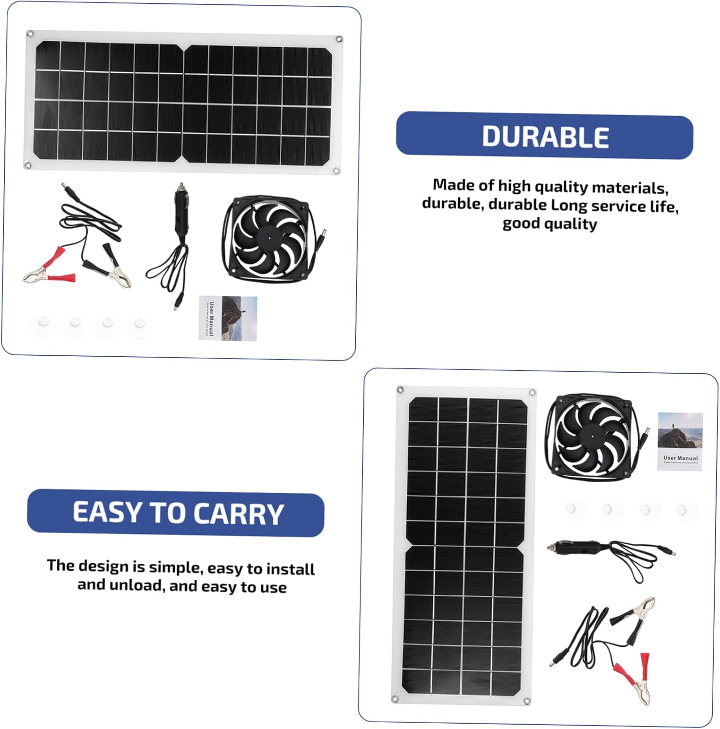 Package List 1 x Solar Panel 1 x Fan 1 x Lighter Charger 1 x Battery Clamp 4 x Suction Cups 1 x User Manual Features - Color: Assorted Color Solar Panel Powered Fan. - Irradiance: 1000W/㎡ Chicken House Fan. - Size: Approx. 42.00X19.00X0.25cm/16.51X7.47X0.10in Breeding . - Open Circuit Voltage: 14V Solar Powered Fan. - Maximum Power : 0. Cooling Fan. - Maximum Power: 10W Solar Panel Fan. - AM: 1.5 Breeding Fan. - Temperature: 25℃ Ventilation System. - Maximum Power Voltage: 12V Greenhouse Mini . - Short Circuit : 1.1A Summer Cooler. - Output: USB 5V, DC5521 12V Indoor Cooling Ventilation System. - Material: Monocrystalline silicon Outdoor Solar Fan. - This outdoor solar panel can convert sunlight into electrical energy Mini . - The solar panel also can be used as a power bank to charge your devices Pig House Fan. - It can be used for charging, which is suitable for outdoor activities, emergency and outdoor work Solar Fan. - It can maintain a comfortable temperature level in your livestock farm Solar Attic Fan. - Widely used in greenhouse, pet house, tree house and RV etc Solar Energy Cooling Fan.Goods DescriptionSolar Fan Are you looking for a professional, yet solar fan? Are you in search of a sturdy, trustworthy tool that can do multiple jobs at once? , ! Our professional solar fan set must meet your needs.Breeding Fan It is one of for you