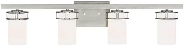 The Generation Lighting Robie three light vanity fixture in brushed nickel offers shadow-free lighting in your powder room, spa, or master bath room. Dimensions — Height: 8.125 Inch, Width: 24 Inch. This fixture requires 3.0 3 A19 Medium 75 watt light bulbs (sold separately). Constructed from Steel with etched / white inside glass shades glass for lasting durability and visual appeal. Safety rated cETL for damp locations. Meets Title 24 energy efficiency standards when used with JA8-approved bulbs. All mounting hardware included for easy installation. Generation Lighting 4421603-962 Three Light Wall / Bath This fixture from the Robie collection adds a touch of style and interest to any room. 3 A19 Medium 75 watt light bulbs (Not Included). A great choice for your do-it-yourself project! Our products are compatible and easily convert to LED with optional replacement lamps. Etched / white inside glass shades. When shopping around for a lighting fixture to complement your space, Generation Lighting is the preferred brand choice of builders and electricians.