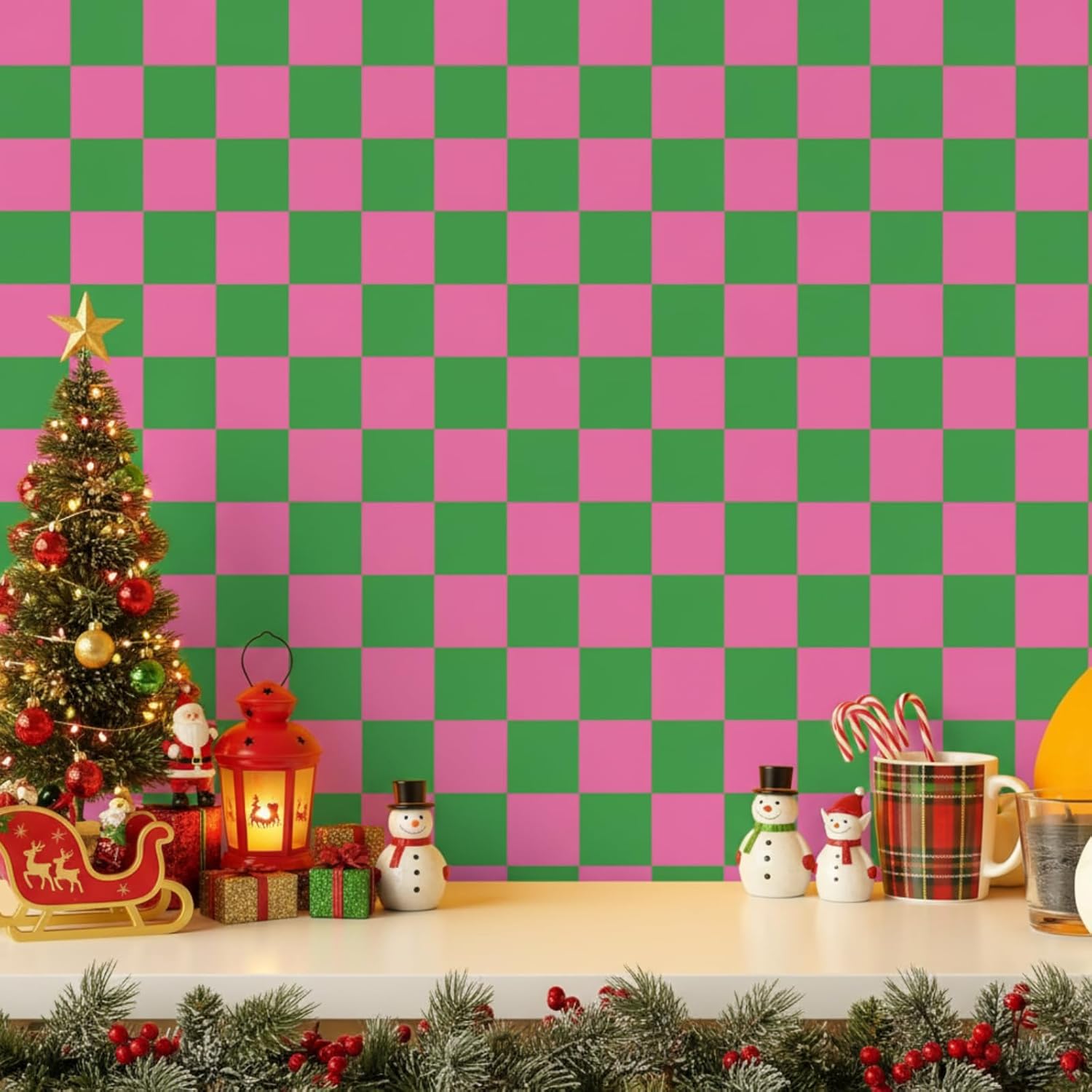 Features: Ideal gift: This checkerboard decor serves as an ideal gift option for multiple occasions. Be it housewarming, Christmas, Halloween, birthdays and more. The beauty and versatility of this product make it a practical present for family or colleagues. Useful tools: The peelable wallpaper is a useful tool to decorate your home, making your room become charming and beautiful. Attractive appearance and practical usages are nice, you will adore them. Specifications: Material: PVCColor: greenSize: about 15.75 inches x 9.8 ft / 40 x 300 cmPackage includes: 1 x Checkerboard Peel and Stick WallpaperNotes: Manual measurement, please allow slight errors on size. The color may exist a slight difference due to different screen displays.