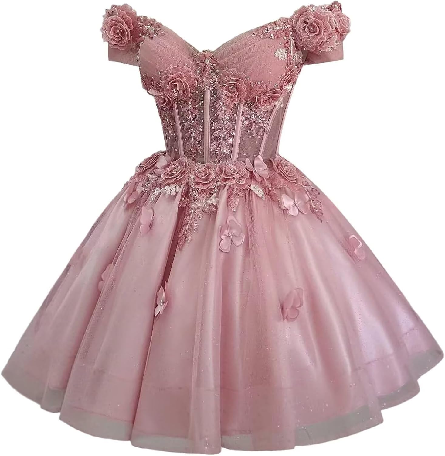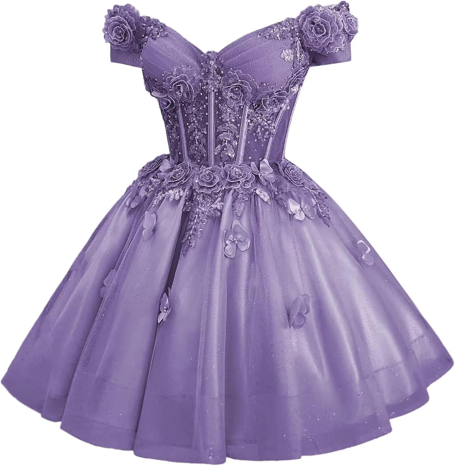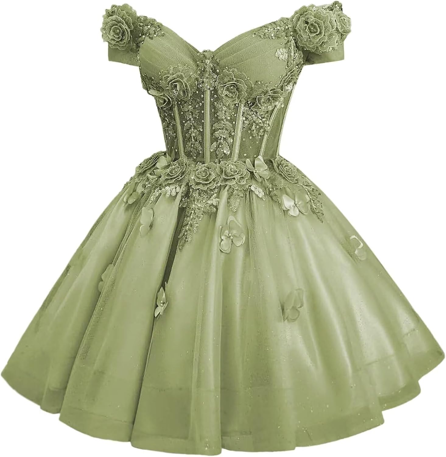 | Embellishment Feature | A Line, Above Knee, Flower, Off Shoulder, with Butterfly |