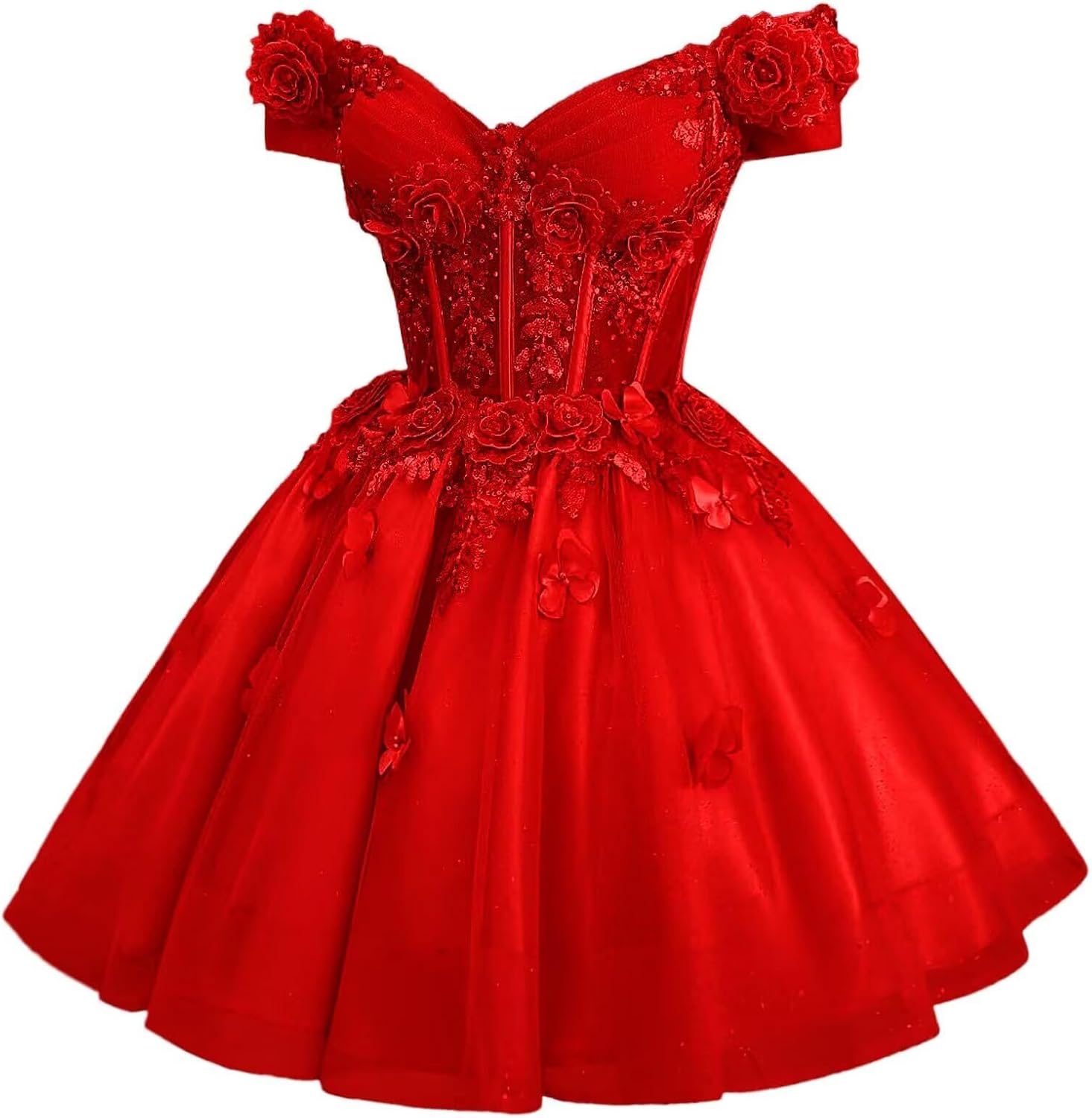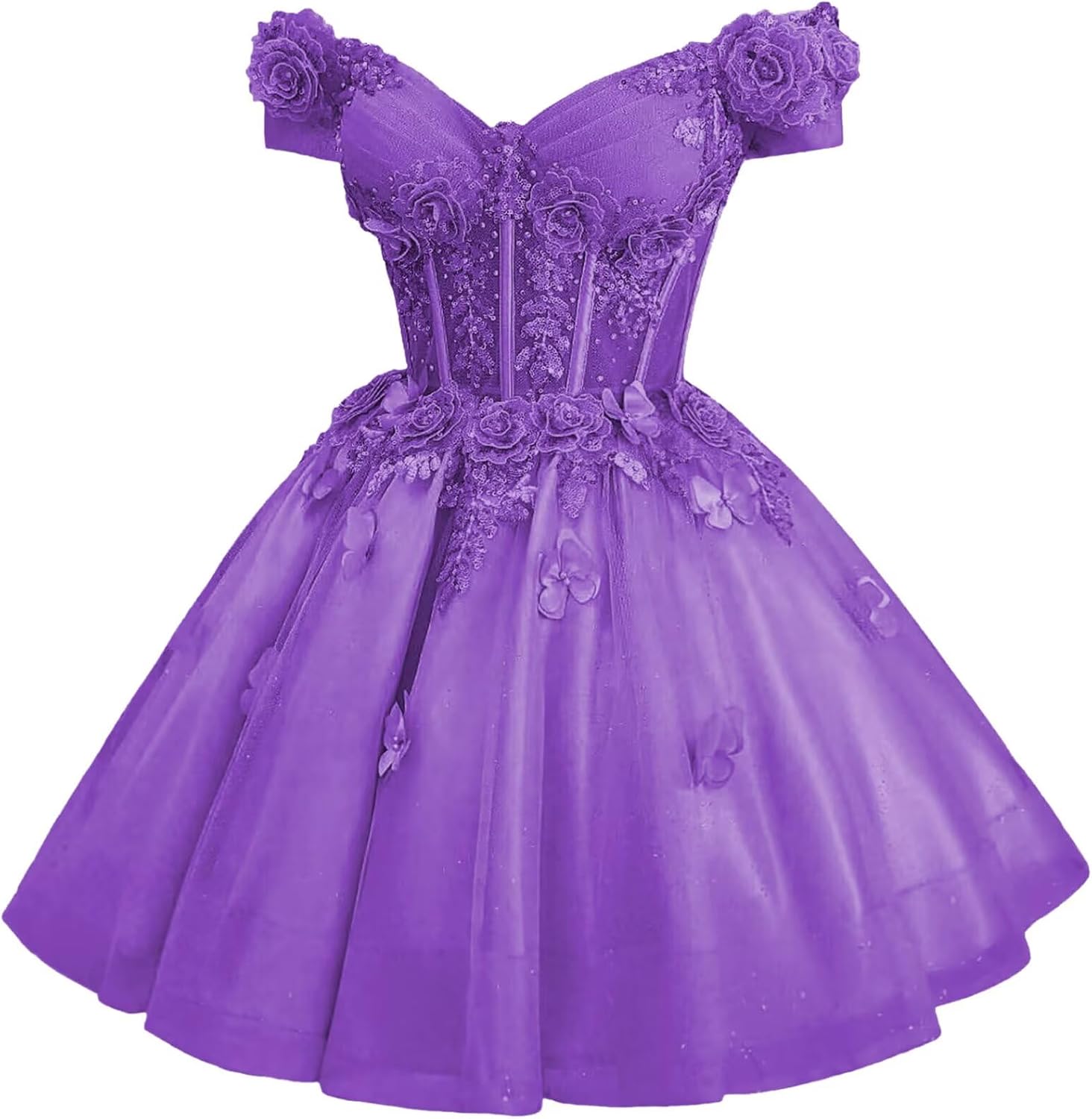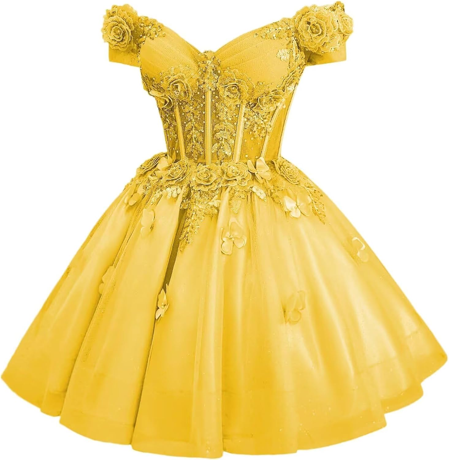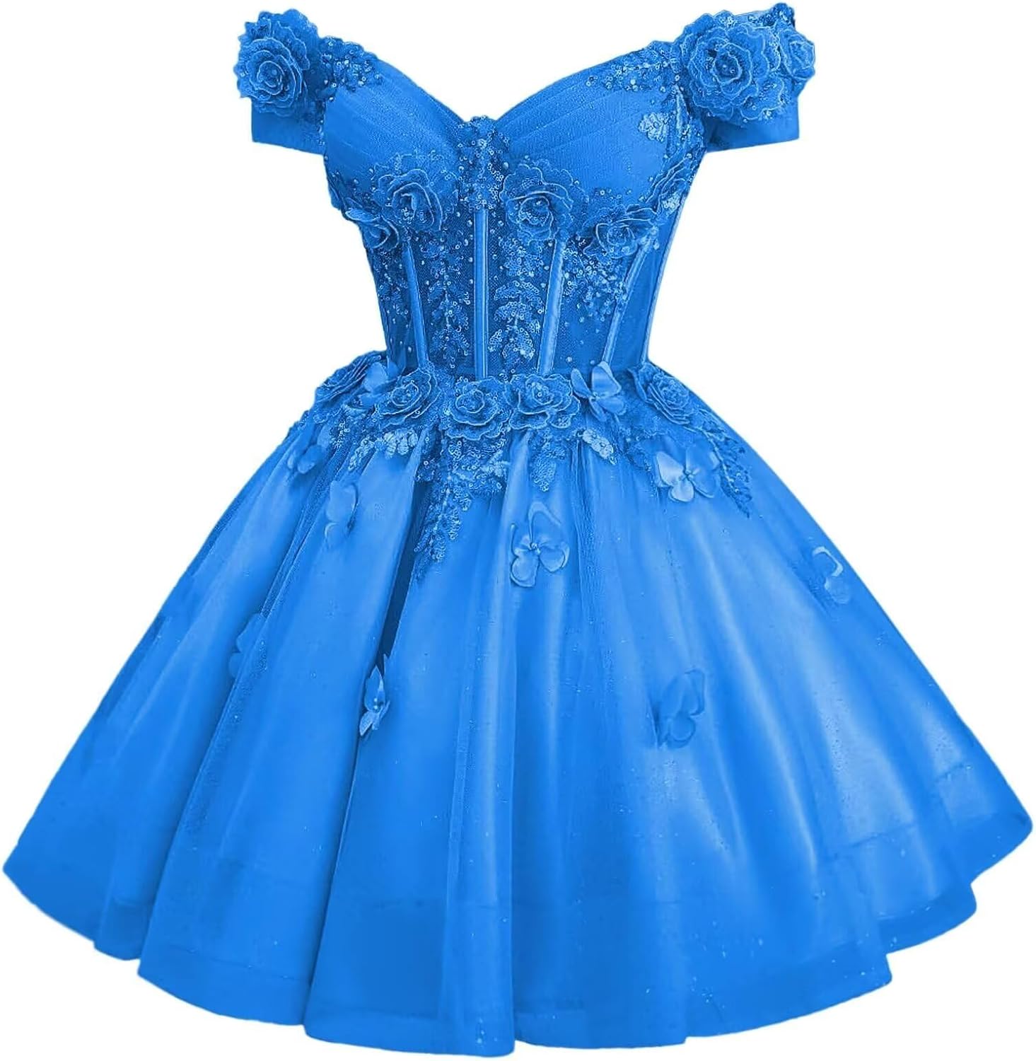 | Embellishment Feature | A Line, Above Knee, Flower, Off Shoulder, with Butterfly |
