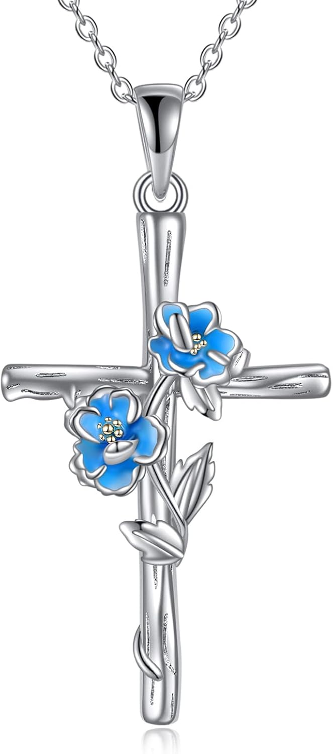 | Color | Rose cross necklace-February Birth Flower |