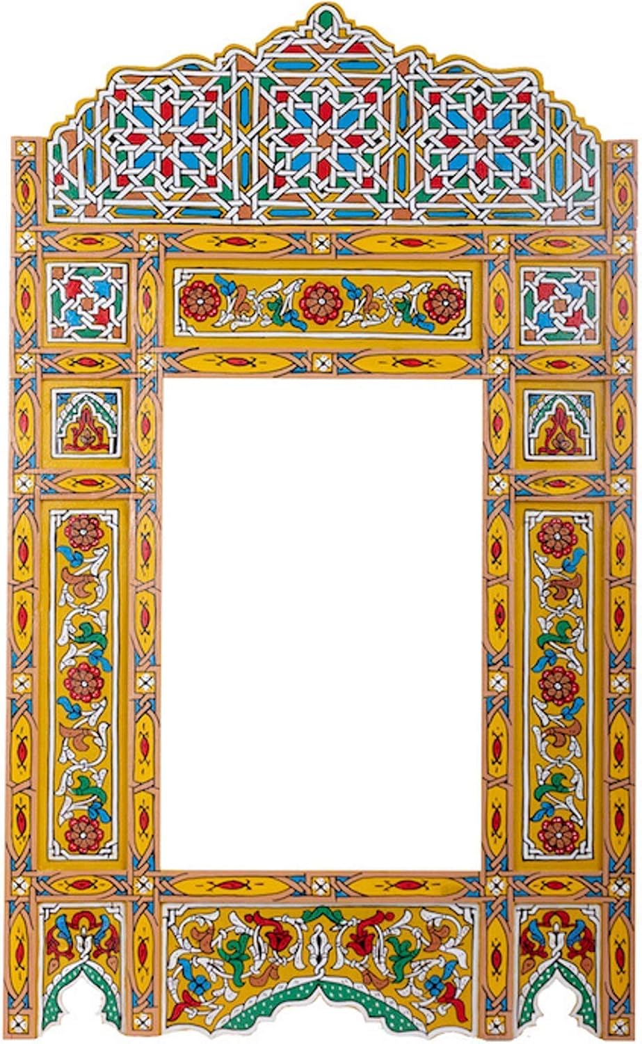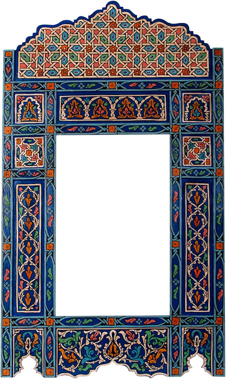 Handcrafted by a skilled craftsman in Chefchaouen, the hand-hammered wooden Arabic style wall mirror will create a sensation in your home. Frame Size : - Hieght: 116 cm (45’’) - Width: 68 cm (26") Mirror Size : - Hieght: 50cm (19’’) - Width: 38cm (15") Materiel : wood This fine mirror really gives a palatial feel to whichever room you decide to hang it in. It's made by the same Technics used in Alhambra palace in Granada by the Nasrid. The incredible ornate frame makes it an instant conversation piece that will win your home many compliments. Whisk yourself away to North Africa with our amazing selection of Moroccan wall mirrors! Elegant, finely-crafted, and real conversation pieces. Our wall mirrors evoke that faraway feel of a mysterious, sun-soaked land where shade is highly prized. You can be assured that all our Moroccan mirrors are crafted with care and attention to detail. This item is handmade by three craftsmen and took 3 days. We ship just the wooden frame. Do not hesitate to ask any information about this product or other items.