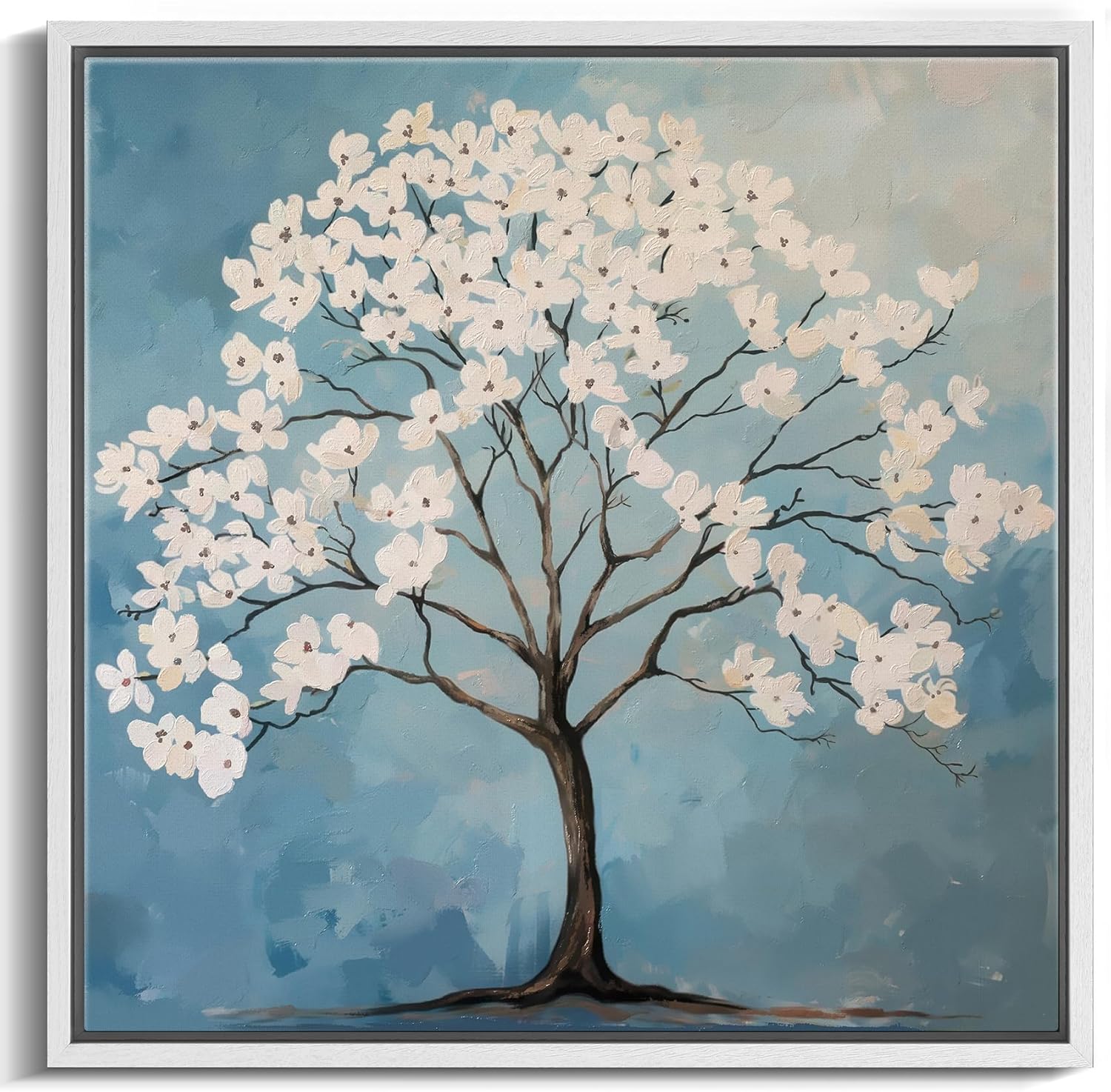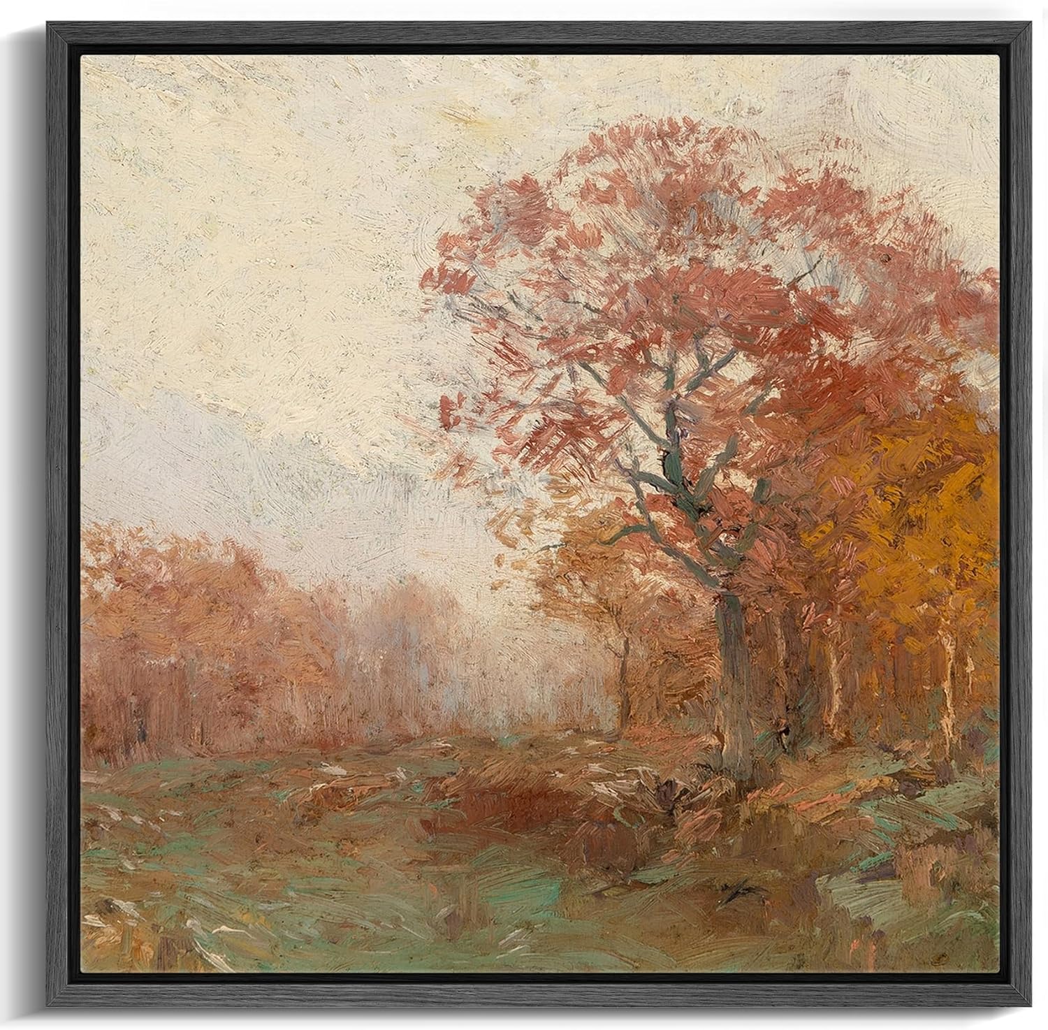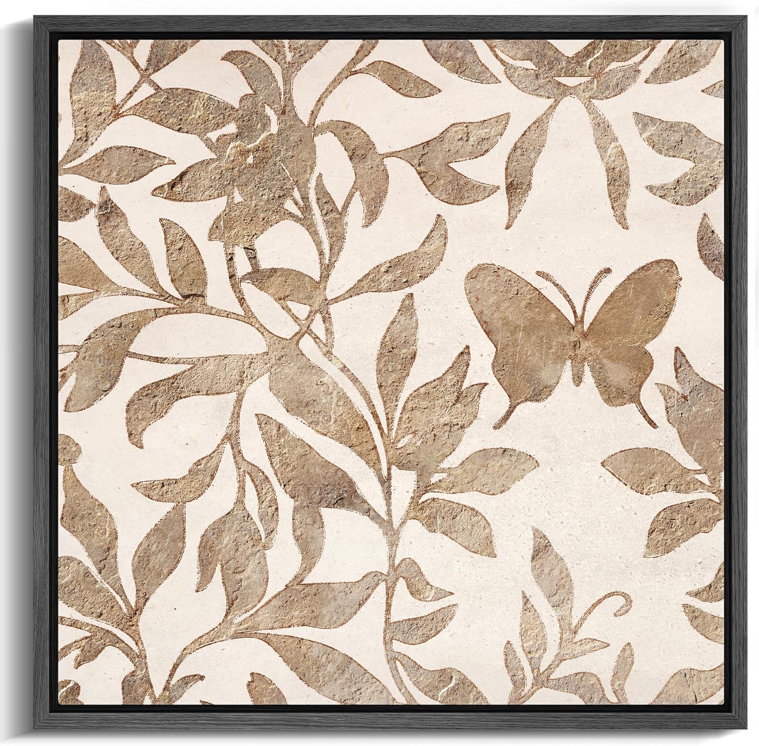 MUDECOR Framed Canvas Print Wall Art Vibrant Abstract Floral Still Life in Warm Tones Illustrations Realism Decorative Scenic Panoramic Earth for Living Room, Bedroom, Office - 24"x24" Natural