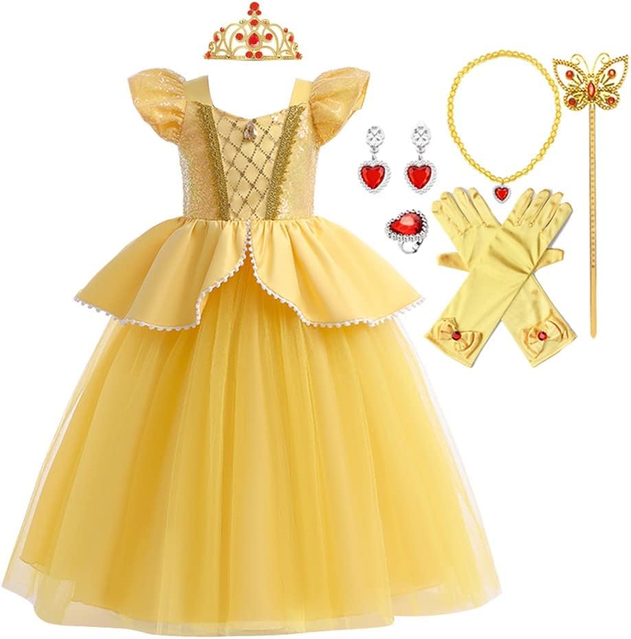 MYRISAM provides your kids with stylish and affordable dresses&outfits for every occasion. Flower Girl Dresses, Princess Dress, Birthday Outfits, Dance Dresses&Outfits, Dressing Up Costumes, Special Occasions Outfit, Apparel Accessories, etc. No matter where your kids are headed, MYRISAM has the best dresses&outfits for every event. You can find the perfect look for your kids' unique taste.Princess Belle Costumes for Girls Fancy Party Dress up Halloween Dress w/ Gloves from MYRISAM. —— It has all of the bells and whistles to make your little girl the PRETTIEST ONE OF ALL.♦ CONDITION: New with Tags♦ PACKAGE INCLUDE: 1PC Dress ONLY (OR 1 x Dress + Accessories Set )♦ MATERIAL: Polyester, Velvet, Tulle♦ SEASONS: Spring Summer Autumn Winter All Seasons♦ SIZE: Girls size 3-13T (Please Check the Last Image for Size Details before Purchasing)♦ FEATURES: Off Shoulder Design, Ruffle Details, Fluffy Skirt, Multi-Layer Tulle, Over-skirt Trimmed with Exquisite Lace w/bows, Pair of arm sleeves or gloves adorned bowknot, (Accessories Set), etc. ♦ OCCASIONS: Perfect gift for Halloween, Carnival, Masquerade, Role play, Birthday, Christmas, New Year, and any occasion for your daughter, niece, granddaughter.♦ GARMENT CARE: Please Use Gentle Detergent and Hand Wash Inside Out under 30℃ Water, Hang or Line Dry, Do Not Bleach, Do Not High Temperature Ironing.♦ COLOR DISCLAIMER: Due to Monitor Settings and Monitor Pixel Definitions, We Cannot Ensure that the Color You See on Your Screen as an Exact Color of the Product.❥ MYRISAM is committed to providing each customer with the highest standard of customer service. Any question or concern, please feel free to send us emails directly.