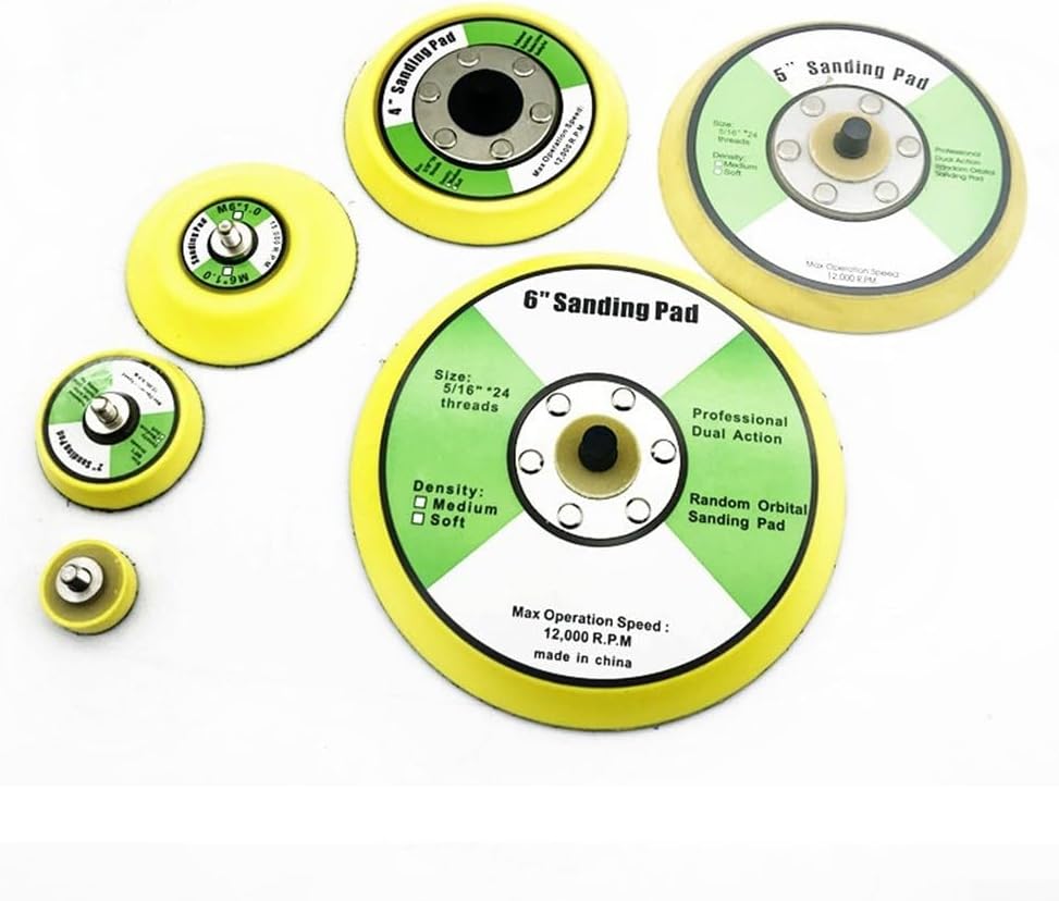 Product description Features:*Quality and backing pad*Suitable for air sander DA and other orbital sanders.*Use with and, polishing sponges, bonnets and sanding discs*Stable and. Easy to use.A variety of sizes to meet your needSpecification:*Diameter: 1''- 25mm, 2''- 50mm, 3''- 75mm, 4''- 100mm, 5''- 125mm, 6"-150mm*Male thread size:1 inch/2 inch/3 inch:M64 inch/5 inch/6 inch:M8*Maximum operating speed: 12000 RPM*Scope of application:used in artificial stone,furniture and wood products,metal,automobiles,.Grinding and polishing*Quantity: 1pcsPackage Contents:1* Backing Pad Manufacturer Contact Information no