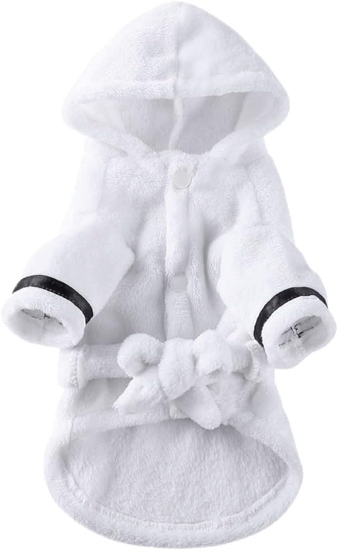 Package List 5 x Dog Bathrobe Characteristics - Material: Polyester - for dog daily wearing, playing and sleeping. And also a good idea to wear it as your dogs indoor clothes. - Size ( ): 31.00X46.00X28.00cm/ 12.18X18.08X11.00in; Chest Circumference: 46cm/ 18.08in; Collar Circumference: 28cm/ 11.00in - Size ( L ): 35.00X50.00X32.00cm/ 13.76X19.65X12.58in; Chest Circumference: 50cm/ 19.65in; Collar Circumference: 32cm/ 12.58in - Simple design, chic and fashion. Compact and lightweight, convenient to carry. - It comes with design, which makes your dog look adorable and special. - Made of good and supple polyester material, for use. - Size ( XL ): 39.00X56.00X36.00cm/ 15.33X22.01X14.15in; Chest Circumference: 56cm/ 22.01in; Collar Circumference: 36cm/ 14.15in - Wearable design, simple and convenient, suitable for most dog, funny party atmosphere. - Color: White - Size ( S ): 27.00X40.00X25.00cm/ 10.61X15.72X9.82in; Chest Circumference: 40cm/ 15.72in; Collar Circumference: 25cm/ 9.82in Goods Information This dog bathrobe is carefully crafted from , which looks cool and. The stylish design with comfortable texture will ensure its practicability and popularity among small dogs. easy to put on and comfortable to your little dog. So, just dress up your lovely dog with this clothing.