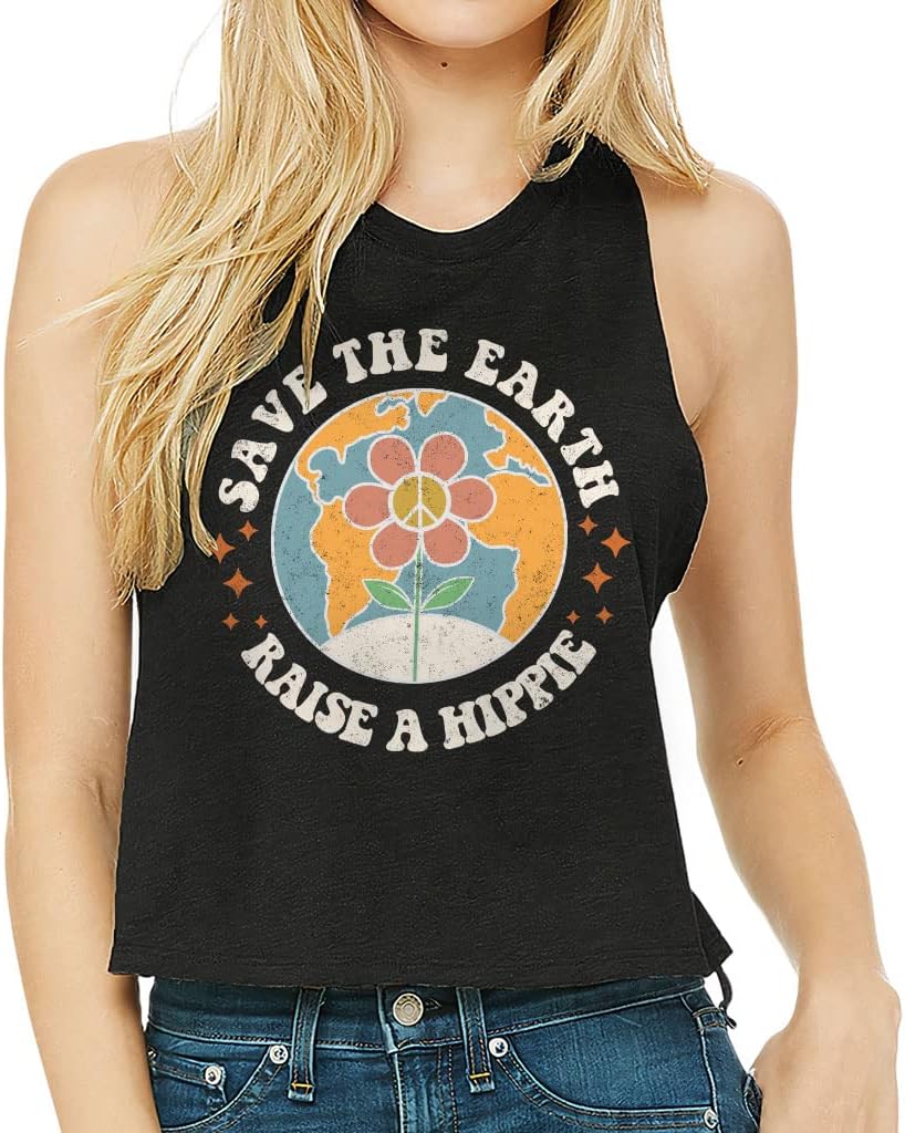Cute and flattering Save the Earth Racerback Cropped Tank is suitable for most indoor or outdoor activities, such as gym, yoga, running, hiking, beach or relaxing around the house. Pair Hippie Women's Tank with your favorite sports bras, especially strappy ones, and high-waisted leggings, then you will enjoy cool and comfortable exercise throughout the summer.