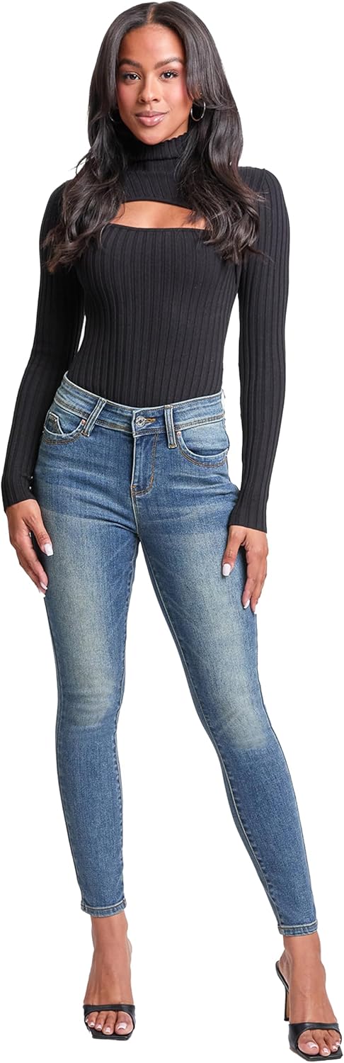 Women's WannaBettaButt Mid Rise Embroidered Skinny Jean by YMI Jeans, where style meets sophistication for the modern woman's denim collection. Crafted with meticulous attention to detail, these jeans redefine casual chic with their flattering fit and intricate embroidered details. Featuring a mid-rise skinny silhouette, these jeans offer a sleek and stylish look that accentuates your curves with confidence. The 1-button closure with zipper ensures a secure and polished finish, while the back embroidered pockets add a touch of elegance and flair to your ensemble. Designed with YMI's signature WannaBettaButt technology, these jeans enhance and sculpt your curves for a flattering silhouette that boosts your confidence. Whether you're running errands or enjoying a night out with friends, these jeans provide the perfect blend of style and comfort.