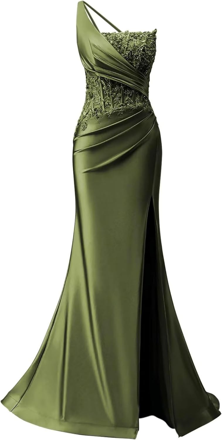 • 【Notice】Any Question with the One Shoulder Satin Prom Dresses Mermaid Lace Applique Evening Gala Gowns with Split,Please let us know.